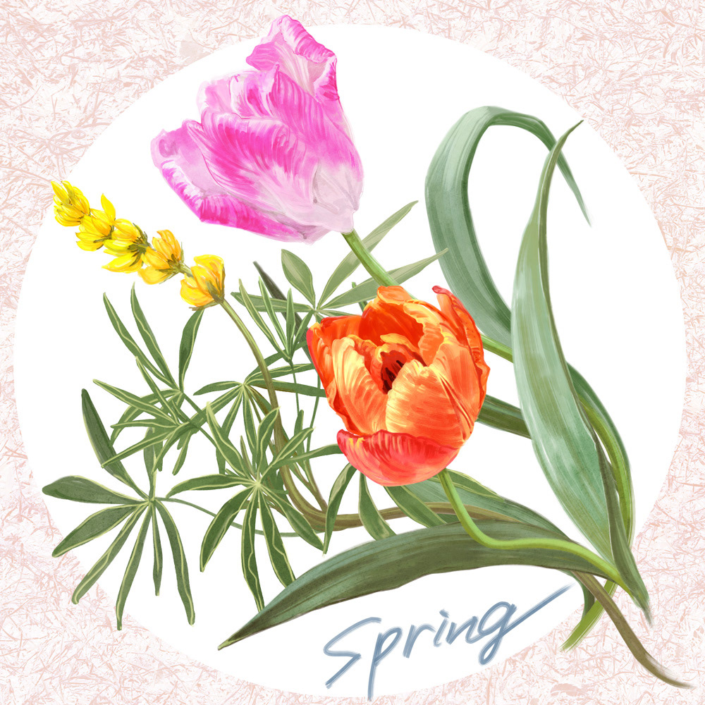 チューリップのイラストを使ったboxのモックアップ